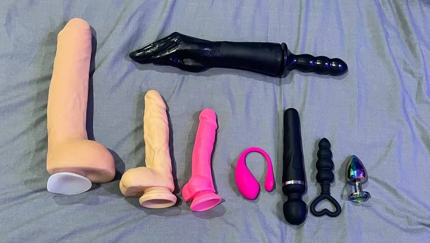 2 toys from lovense: lush 3, domi. dildos: nude 9 inc/23 cm, nude 14 inch/35 cm, dildo pink 7 inc/17 cm. black fisting hand 15 inch/38 cm. anal plugs: black with a heart, big metal with a diamond. I will be glad if you add to my collection)